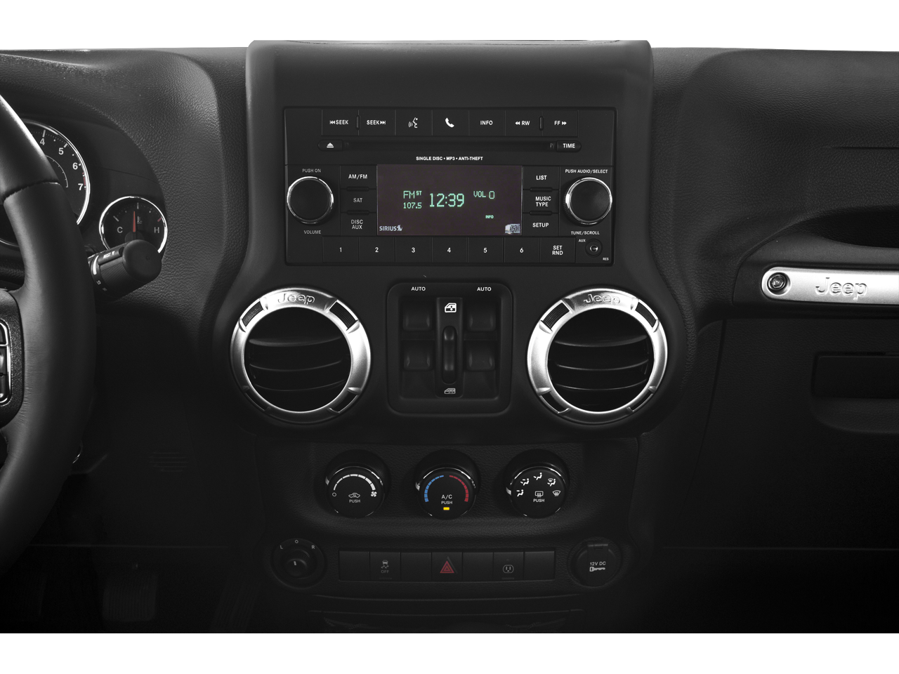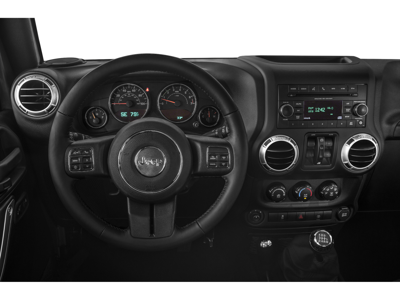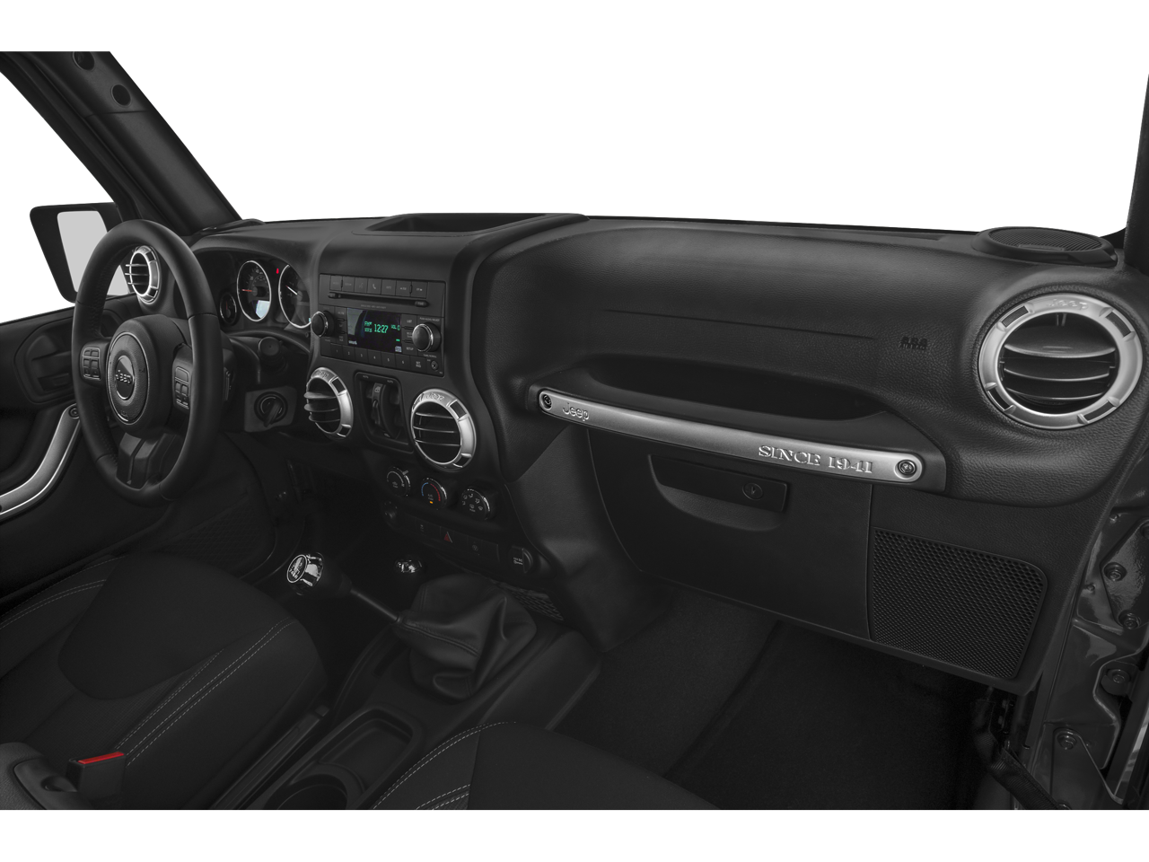 18 x 7.5 7-Spoke Polished Aluminum Wheels, 18 x 7.5 Polished Satin Carbon Wheels, 3.21 Rear Axle Ratio, 4-Wheel Disc Brakes, 40GB Hard Drive w/28GB Available, 5-Year SIRIUSXM Travel Link Service, 6.5 Touch Screen Display, 8 Speakers, ABS brakes, Air Conditioning, Alloy wheels, Alpine 9-Speaker w/All Weather Subwoofer, AM/FM radio, Audio Jack Input for Mobile Devices, Auto-dimming Rear-View mirror, Black 3-Piece Hard Top, Brake assist, CD player, Cloth Bucket Seats, Compass, Delete Sunrider Soft Top, Driver door bin, Driver vanity mirror, Dual front impact airbags, Electronic Stability Control, Freedom Panel Storage Bag, Front anti-roll bar, Front Bucket Seats, Front Center Armrest w/Storage, Front fog lights, Front reading lights, Fully automatic headlights, GPS Navigation, Heated door mirrors, Heated Front Seats, Heavy Duty Suspension w/Gas Shocks, Illuminated entry, Integrated roll-over protection, Leather steering wheel, Leather Wrapped Steering Wheel, Low tire pressure warning, MOPAR Jeep Trail Rated Kit (DISC), MOPAR Slush Mats, Occupant sensing airbag, Outside temperature display, Panic alarm, Passenger door bin, Passenger vanity mirror, Power door mirrors, Power steering, Power windows, Quick Order Package 24G, Radio data system, Radio: Uconnect 130 AM/FM/CD/MP3, Radio: Uconnect 430N CD/DVD/MP3/HDD/NAV, Rear anti-roll bar, Rear Window Defroster, Rear Window Wiper/Washer, Remote keyless entry, Remote Start System, Remote USB Port, Security system, SIRIUSXM Travel Link, Speed control, Split folding rear seat, Steering wheel mounted audio controls, Sunrider Soft Top, Supplemental Front Seat Side Airbags, Tachometer, Tilt steering wheel, Traction control, Trip computer, Variably intermittent wipers.