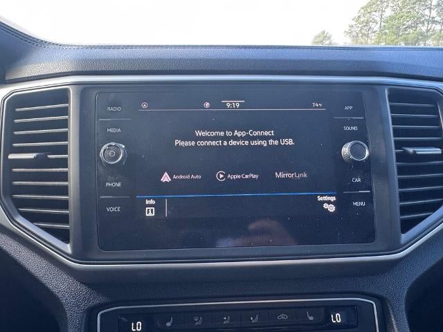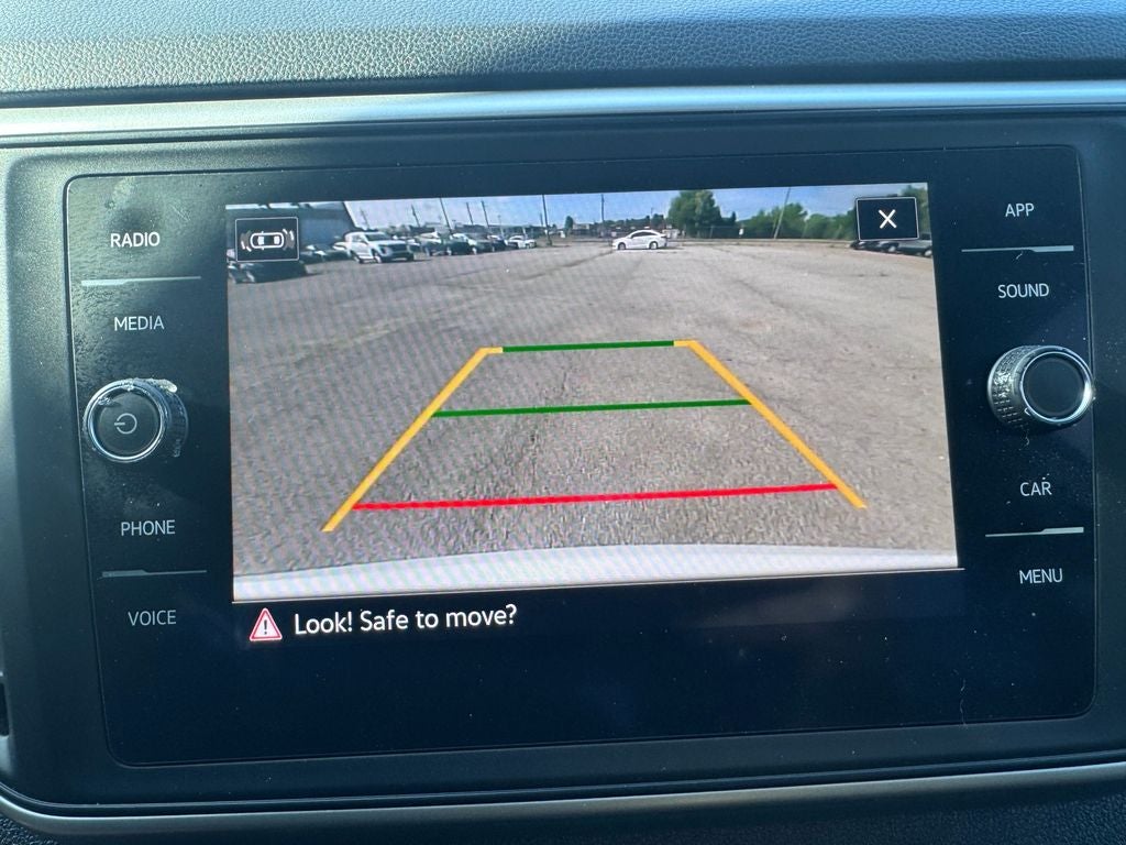 2nd-Row Dual Captain's Chairs, 3.60 Axle Ratio, 3rd row seats: split-bench, 4-Wheel Disc Brakes, 6 Speakers, ABS brakes, Air Conditioning, Alloy wheels, Auto-dimming Rear-View mirror, Automatic temperature control, Brake assist, Bumpers: body-color, Carpeted Mats - Captain's Chairs, Compass, Delay-off headlights, Driver door bin, Driver vanity mirror, Dual front impact airbags, Dual front side impact airbags, Electronic Stability Control, Emergency communication system: VW Car-Net services (capabilities require enrollment or subscription), Exterior Parking Camera Rear, Forward collision: FCW w/Autonomous Emergency Braking mitigation, Four wheel independent suspension, Frameless Self-Dimming Rearview Mirror, Front anti-roll bar, Front Bucket Seats, Front Center Armrest, Front dual zone A/C, Front fog lights, Front reading lights, Fully automatic headlights, Heated Comfort Front Bucket Seats, Heated door mirrors, Heated front seats, Illuminated entry, Leather Shift Knob, Low tire pressure warning, Luggage Net, Occupant sensing airbag, Outside temperature display, Overhead airbag, Overhead console, Panic alarm, Panoramic Sunroof Package, Passenger door bin, Passenger vanity mirror, Perforated V-Tex Leatherette Seating Surfaces, Power door mirrors, Power driver seat, Power Liftgate, Power steering, Power windows, Radio data system, Rain sensing wipers, Rear air conditioning, Rear anti-roll bar, Rear reading lights, Rear seat center armrest, Rear window defroster, Rear window wiper, Remote keyless entry, Roof rack: rails only, Security system, Speed control, Speed-sensing steering, Split folding rear seat, Spoiler, Standard Suspension, Steering wheel mounted audio controls, Tachometer, Telescoping steering wheel, Tilt steering wheel, Traction control, Trip computer, Turn signal indicator mirrors, Variably intermittent wipers, VW Care, Wheels: 20 5-Spoke Silver Alloy.