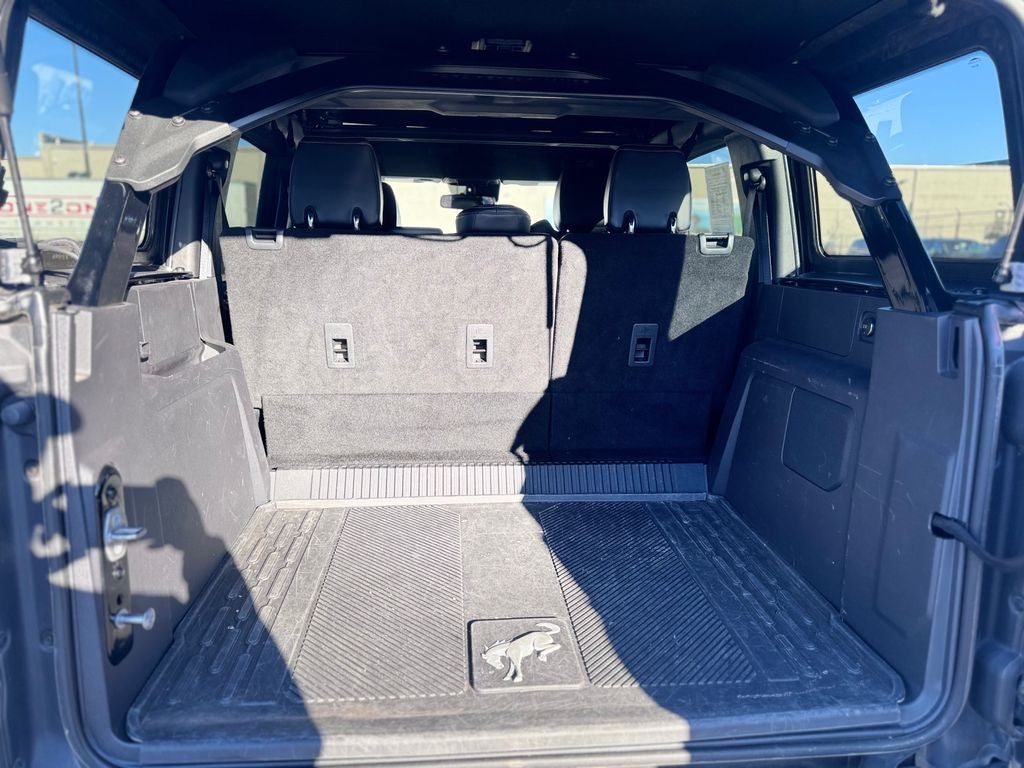 Bronco Raptor, 4D Sport Utility, 3.0L EcoBoost V6, 10-Speed Automatic, 4WD, Shadow Black, Black Onyx Vinyl, 10 Speakers w/Subwoofer, 2 Smart Charging USB Ports In Dashboard, 4-Wheel Disc Brakes, 4.7 Axle Ratio, 7 Speakers, ABS brakes, Adaptive Cruise Control, Air Conditioning, Alloy wheels, AM/FM radio: SiriusXM with 360L, AM/FM Stereo, Auto High-beam Headlights, Auto-dimming Rear-View mirror, Automatic temperature control, Brake assist, Compass, Connected Built-In Navigation, Connected Navigation, Convertible HardTop, Convertible roof lining, Delay-off headlights, Driver door bin, Driver vanity mirror, Dual front impact airbags, Dual front side impact airbags, Electronic Stability Control, Emergency communication system: 911 Assist, Equipment Group 374A Lux Package, Evasive Steering Assist, Exterior Parking Camera Rear, Front anti-roll bar, Front Bucket Seats, Front Center Armrest, Front dual zone A/C, Front fog lights, Front reading lights, Front wheel independent suspension, Fully automatic headlights, Glass rear window, Hard Top Sound Deadening Headliner (DISC), Heated door mirrors, Heated front seats, Heated Steering Wheel, Illuminated entry, Integrated roll-over protection, Interior Carbon Fiber Pack 6, Keyless Entry Keypad, Leather Shift Knob, Low tire pressure warning, Lux Package, Marine Grade Vinyl Bucket Seats, Navigation system: Connected Navigation, Occupant sensing airbag, Outside temperature display, Overhead airbag, Overhead console, Panic alarm, Passenger door bin, Passenger vanity mirror, Power door mirrors, Power steering, Power windows, Radio data system, Radio: B&O Sound System by Bang & Olufsen, Rear anti-roll bar, Rear seat center armrest, Rear window defroster, Rear window wiper, Remote keyless entry, Security system, SiriusXM Radio w/360L, Speed control, Split folding rear seat, Steering wheel mounted audio controls, SYNC 4, Tachometer, Telescoping steering wheel, Tilt steering wheel, Traction control, Trip computer, Turn signal indicator mirrors, Universal Garage Door Opener, Variably intermittent wipers, Voltmeter, Wheels: 17 Black High Gloss-Painted Aluminum, Wheels: 17 Dark Carbonized Gray Alloy Painted, Wireless Charging Pad, Bronco Raptor, 4D Sport Utility, 3.0L EcoBoost V6, 10-Speed Automatic, 4WD, Shadow Black, Black Onyx Vinyl.