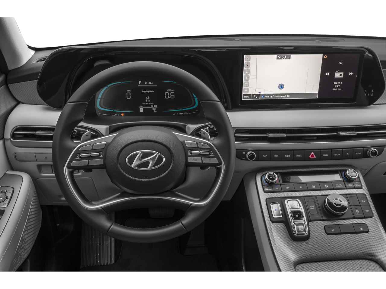 - Radio: AM/FM/MP3 Audio System -inc: 12.3" color touchscreen display, onboard navigation w/traffic flow including incident data via HD Radio (HERE), Over-the-Air (OTA) map updates, SiriusXM, USB, Android Auto and Apple CarPlay, rear seat quiet mode, Bluetooth® hands-free connectivity w/multiple device connection and wireless audio streaming, Wifi hotspot, dynamic voice recognition and Bluelink Connected Car System
