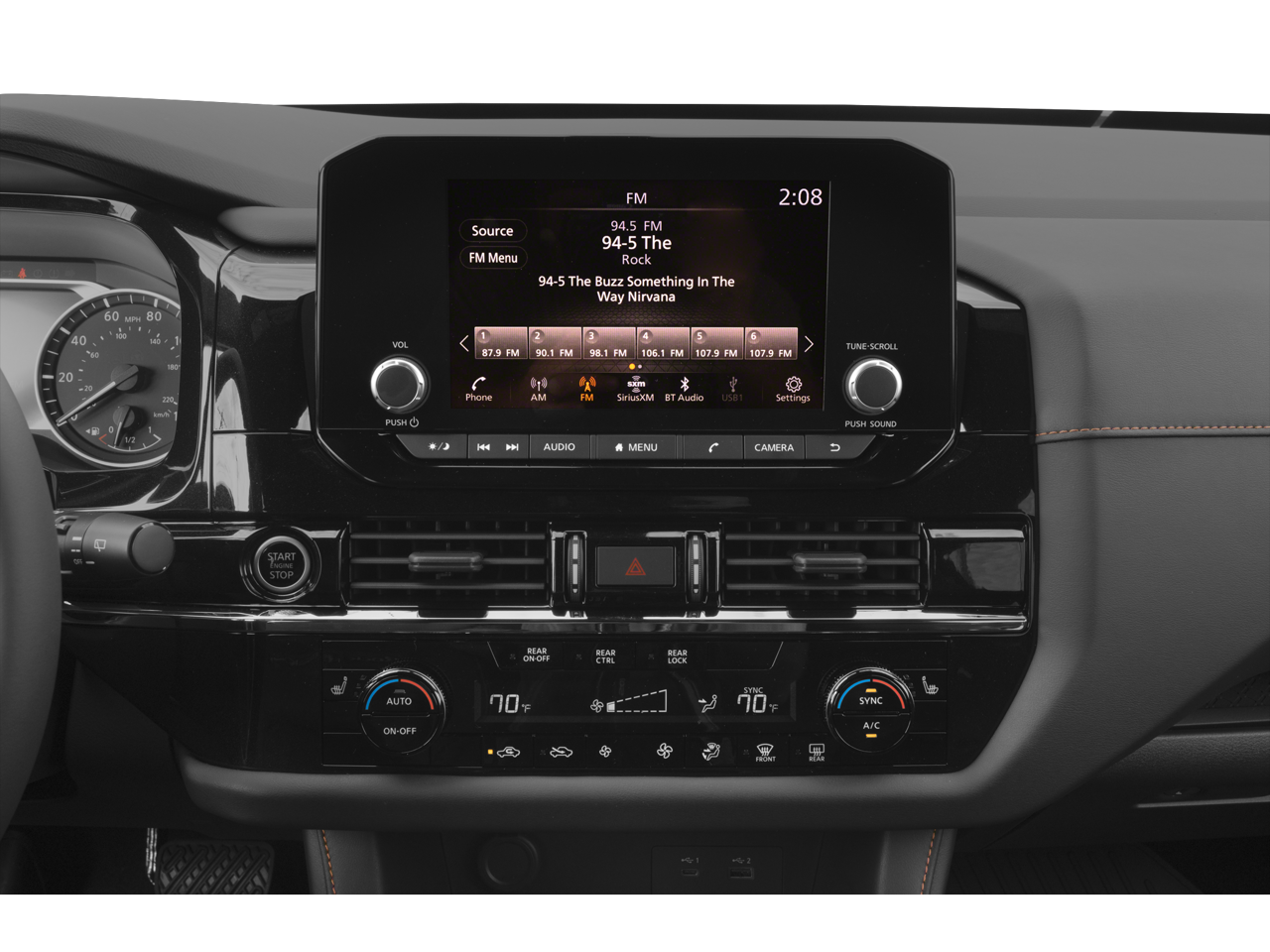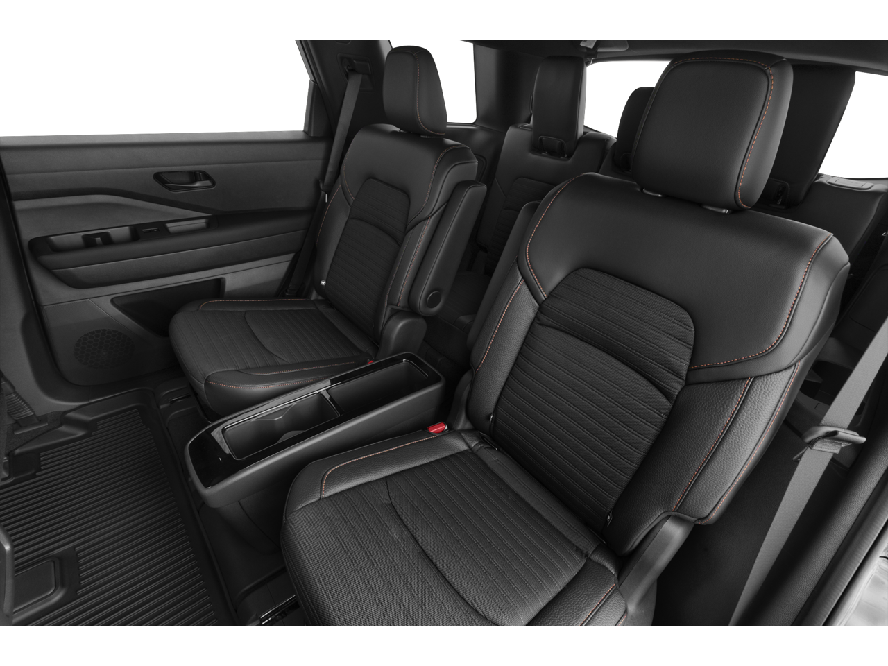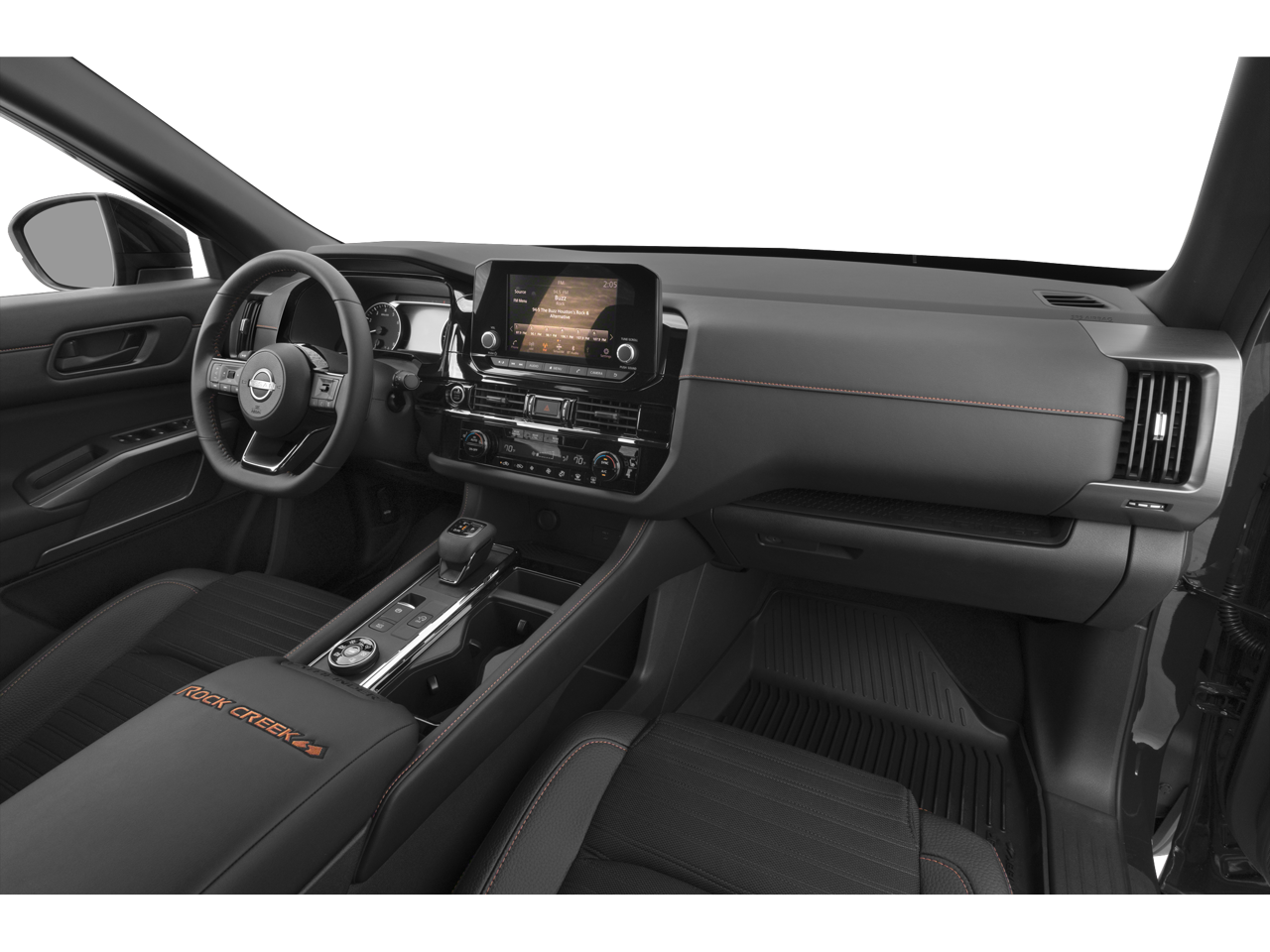 4WD, 3rd row seats: bench, 4-Wheel Disc Brakes, 6 Speakers, ABS brakes, Air Conditioning, Alloy wheels, AM/FM radio: SiriusXM, Auto High-beam Headlights, Automatic temperature control, Brake assist, Delay-off headlights, Driver door bin, Driver vanity mirror, Dual front impact airbags, Dual front side impact airbags, Electronic Stability Control, Emergency communication system, Four wheel independent suspension, Front anti-roll bar, Front Bucket Seats, Front Center Armrest, Front dual zone A/C, Front fog lights, Front reading lights, Fully automatic headlights, Heated door mirrors, Heated Front Bucket Seats, Heated front seats, Illuminated entry, Knee airbag, Leather steering wheel, Leatherette-Appointed Seating Surfaces, Low tire pressure warning, Nissan USB Charging Cable Set, NissanConnect featuring Apple CarPlay and Android Auto, Occupant sensing airbag, Outside temperature display, Overhead airbag, Overhead console, Panic alarm, Passenger door bin, Passenger vanity mirror, Power door mirrors, Power driver seat, Power Liftgate, Power steering, Power windows, Radio data system, Radio: AM/FM Audio System with NissanConnect, Rear air conditioning, Rear anti-roll bar, Rear Parking Sensors, Rear reading lights, Rear side impact airbag, Rear window defroster, Rear window wiper, Reclining 3rd row seat, Remote keyless entry, Rock Creek All-Season Floor Liners and All-Season Cargo Area Protector, Rock Creek Roof Rack, Roof rack, Security system, Speed control, Speed-sensing steering, Split folding rear seat, Spoiler, Steering wheel mounted audio controls, Tachometer, Telescoping steering wheel, Tilt steering wheel, Traction control, Trip computer, Turn signal indicator mirrors, Variably intermittent wipers, Wheels: 18 x 8J Machined Alloy with Black Finish, 4WD.